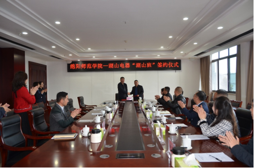 在热烈而友好的氛围中,王力副校长与潘志祥董事长共同签署了“校企合作‘湖山班’培养协议”。这一协议的签署标志着绵阳师范学院与四川湖山电器股份有限公司的“订单班”式人才培养方案正式启动,双方合作开启了新的篇章。