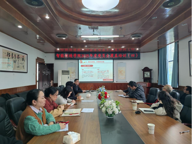 11月6日,智能制造学院在游仙校区综合楼301室进行2025年度党员全覆盖培训第四讲,全体教职工党员参加。