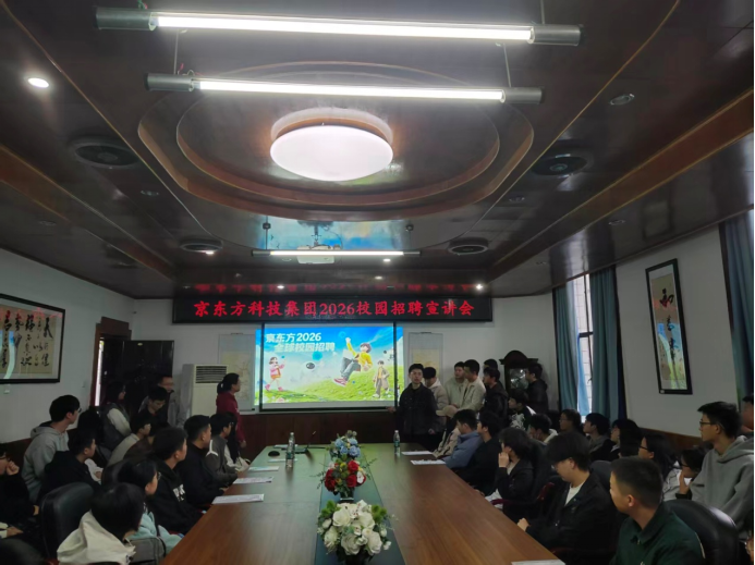 新一代信息技术革命浪潮奔涌,智能制造产业升级方兴未艾,对高素质工程技术人才提出了更为迫切的渴求。为精准搭建校企人才对接桥梁,开拓毕业生优质就业渠道,并深化产教协同育人模式,京东方科技集团(BOE)校招经理赵双、成都京东方B16招聘经理谭文一行于2025年10月23日莅临绵阳师范学院智能制造学院,成功举办了2026届毕业生专场招聘宣讲会,并与学院就未来战略合作进行了深入务实的交流。