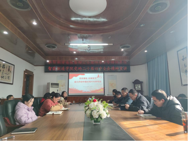 12月18日,智能制造学院召开学习贯彻党的二十届四中全会精神宣讲会。学校宣讲团成员李小琳作宣讲报告。学院纪委负责人主持会议,全体教职工参加。